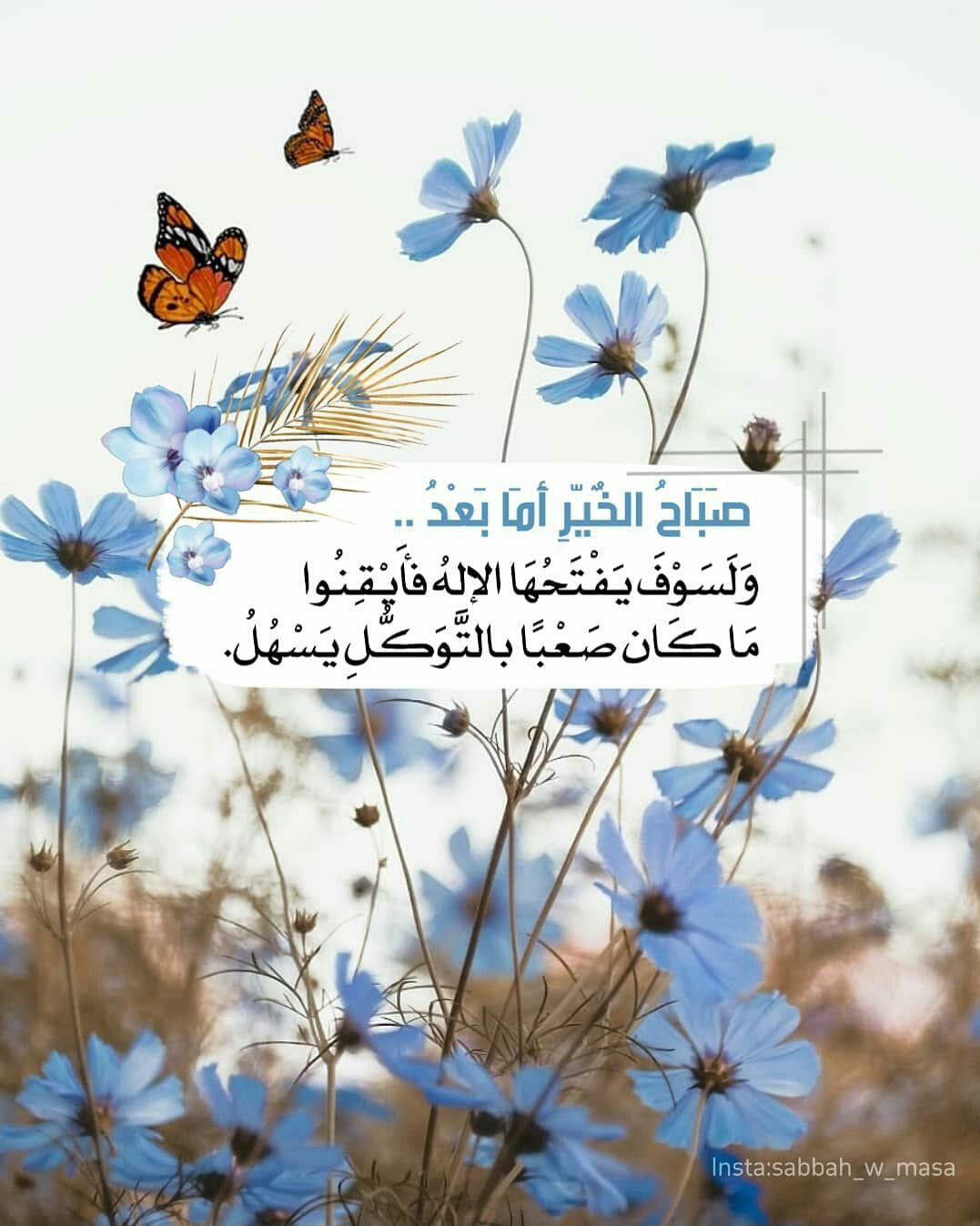 - صباحُ الخيرِ، ثُم بشِّر فؤادكَ بالسُّرورِ.. فرُبَّما أنَّ الذي ترجوهُ باتَ قَريبا 💙